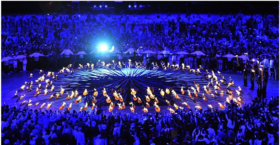 My wife and I managed to crawl out of bed at around 4 am to watch the opening ceremony of the Olympic Games. It had already started, and by the time we joined the billion or so people watching, the show was celebrating the NHS. We missed the Green and Pleasant Land, the Dark Satanic Mills, the Forging of the Olympic Rings, and – worst of all! – the Queen and James Bond parachuting. No matter, we watched the rest, letting ourselves ride along with the slightly manic fun of it all (I don’t know what non-Brits made of it; I’m British but I’ve been out of the country for nigh on 40 years and found a good number of the references quite baffling). We patiently watched as all the country teams filed into the stadium, commenting on costumes and trying to guess which would be the next country, listened politely to the various speeches and Olympic oaths, until we finally got to the lighting of the Olympic flame, or should I say Olympic cauldron.