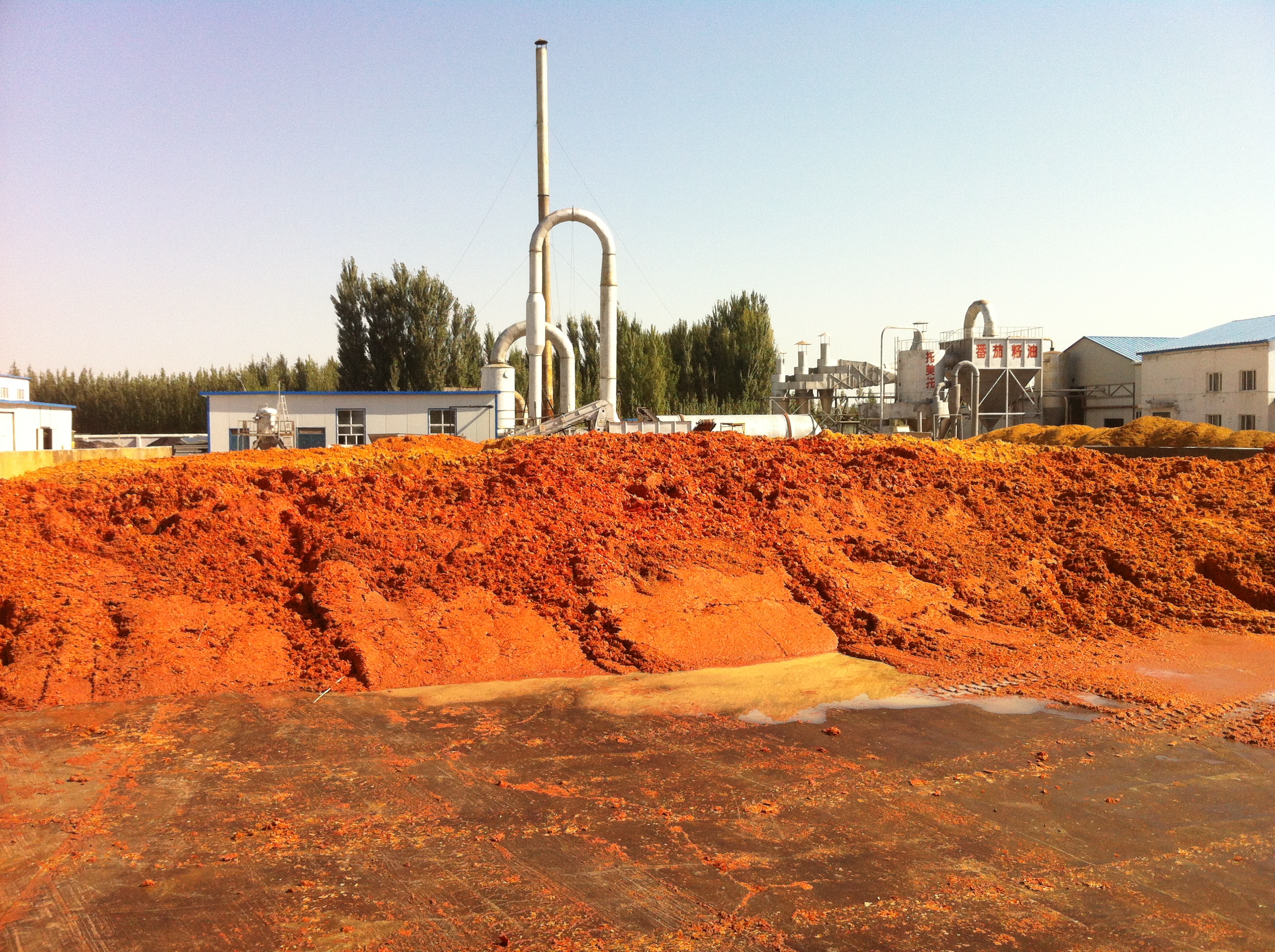 Yes, these are the left-overs from the process to make tomato paste, a significant industry in Xinjiang, which grows some 4 million tons of tomatoes a year. As you might imagine, with a process that basically squeezes the juice out of tomatoes for further concentration the waste consists primarily of tomato seeds and skins.