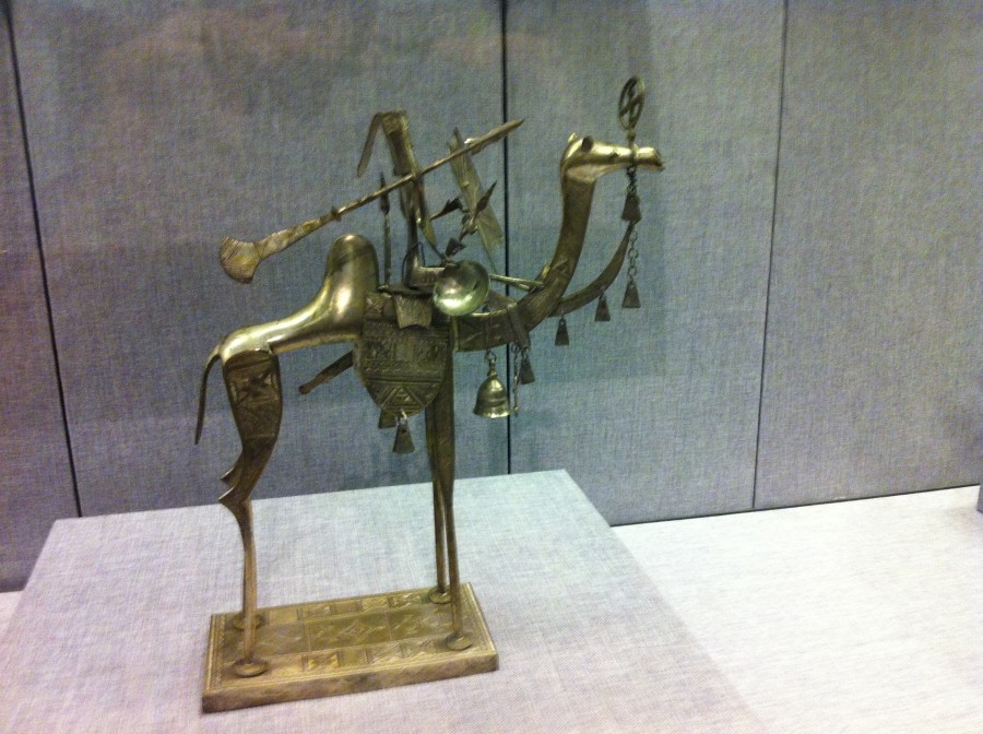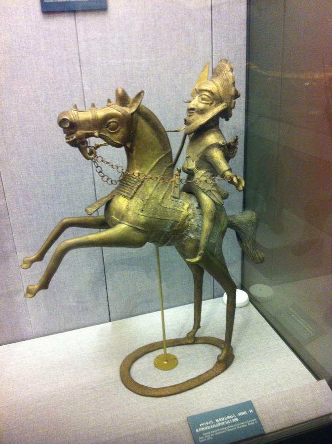 – somewhat in the same style but on a grander scale, a brass horse and rider from Cameroon, given by President Ahmadou Ahidjo to Zhou Enlai