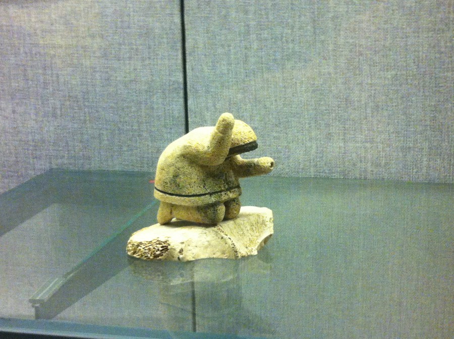 Keeping to the regional focus used in North Korea (the exhibition had the pieces laid out temporally), we can continue with North America, where the only other piece worthy of mention actually came from the same part of the world as the previous two, Alaska. It is a gift from that State’s Government to Deng Xiaoping, of an Inuit ice fishing, made of walrus bone