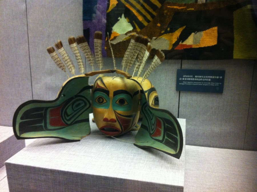 In general, I feel that the Canadians did better than everyone else in their choice of gifts. Here is the one that Pierre Trudeau gave Zhou Enlai, a beautiful Native Indian double mask, from the style I would guess from the Pacific coast