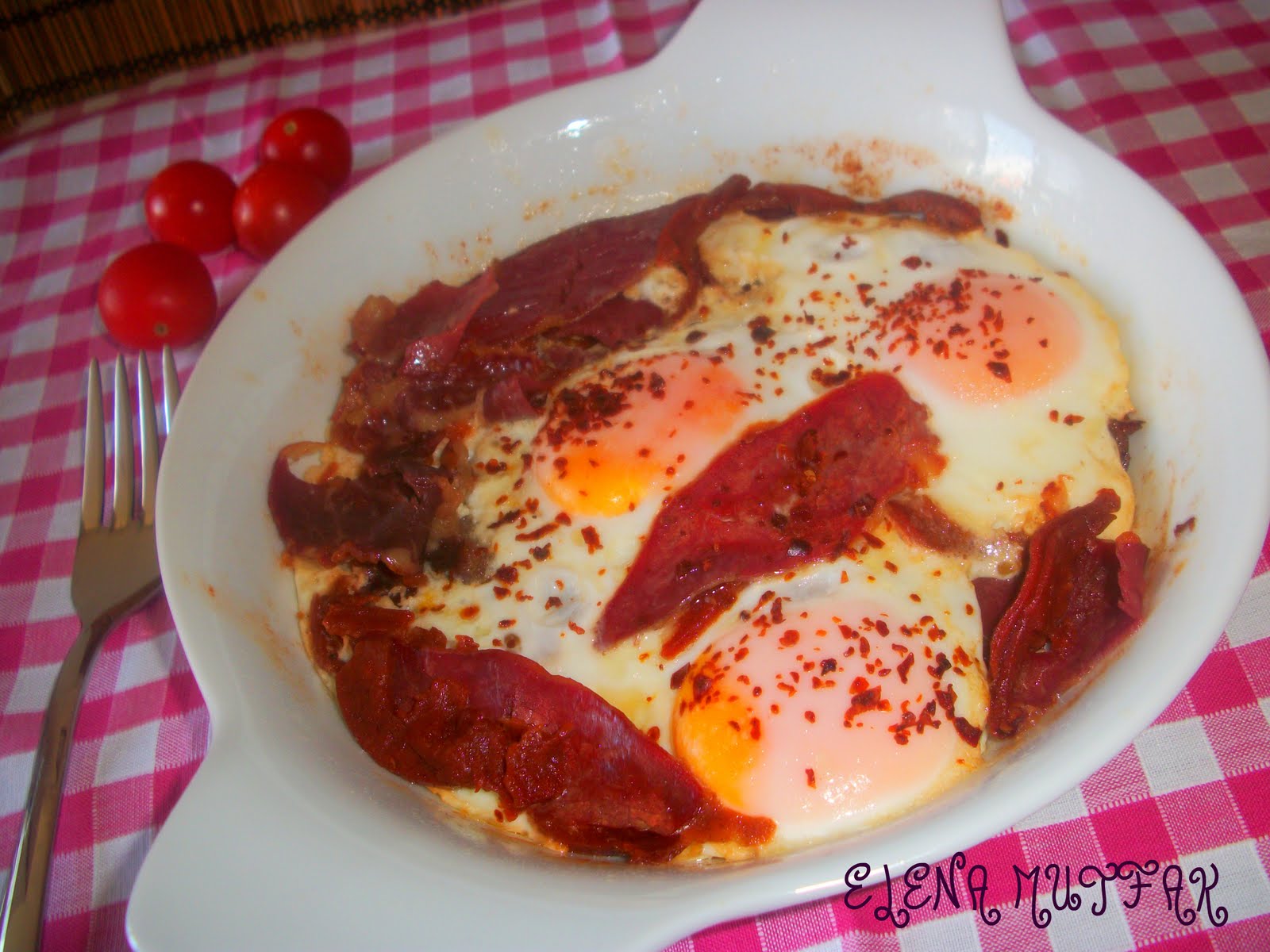 Pastramă and fried eggs: http://3.bp.blogspot.com/_GzvYAGoAhKY/TH5bioNE7PI/AAAAAAAACW0/bto1mheJNDM/s1600/oua.jpg (in http://elenamutfak.blogspot.com/2010/09/pastrama-cu-oua-ochiuri.html)