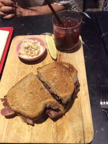 So even though we had had a traumatizing experience two months ago with coq au vin, we decided to risk it. This time, we were not disappointed. We were served very creditable Reuben and pastrami sandwiches. I have a picture of the Reuben sandwich we ate.