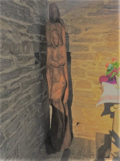 The church was not entirely without decorations, however. Tucked away in a corner of the two little chapels flanking the main altar were an admirable crucifix carved from a cleft branch
