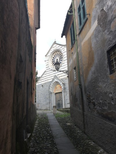 It led us into a delightful little pebbled piazza which sloped gently down to the entry door of the church.