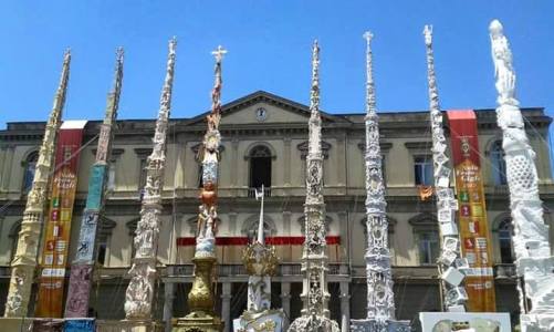 This is an otherwise normal house in Venice which an artist couple have been covering inside and out with broken tiles and pottery for the last twenty years.