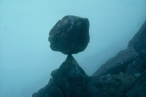 Andy Goldsworthy Balanced Rock Misty: http://www.goldsworthy.cc.gla.ac.uk/image/?tid=1979_068