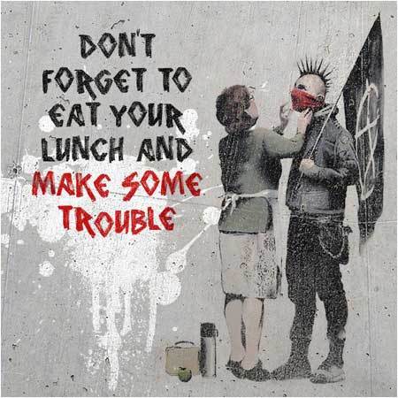 Banksy Make Trouble: https://www.canvasartrocks.com/blogs/posts/70529347-121-amazing-banksy-graffiti-artworks-with-locations