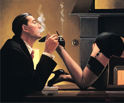 Interesting fellow, Vettriano. You wouldn’t think so from his name, but he’s Scottish – he adopted his mother’s name at some point. He had a very poor childhood, almost Dickensian, even though he’s more or less my age. But he managed to teach himself to paint, so there’s hope yet for all us frustrated artists. I’m not terribly keen for his work, I have to say, much of which tends towards sado-maso soft-porn, like this painting.