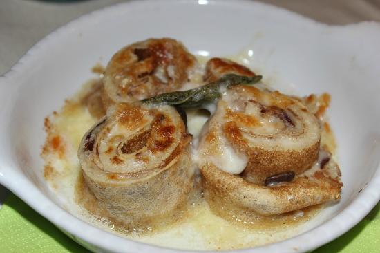 It is well-known for a number of foodstuffs. In the buckwheat category, apart from pizzocheri we have manfrigoli, a sort of little crêpe mixed with local cheese and shredded bresaola (see below).