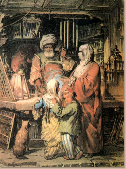 Unfortunately, as far as I can make out there is no existing portrait of Hacı Bekir, so I will make do with a rather romantic watercolour painted by the Maltese painter Amedeo Preziosi some 100 years after Hacı Bekir’s death, which has Bekir Efendi behind his counter serving his clients.