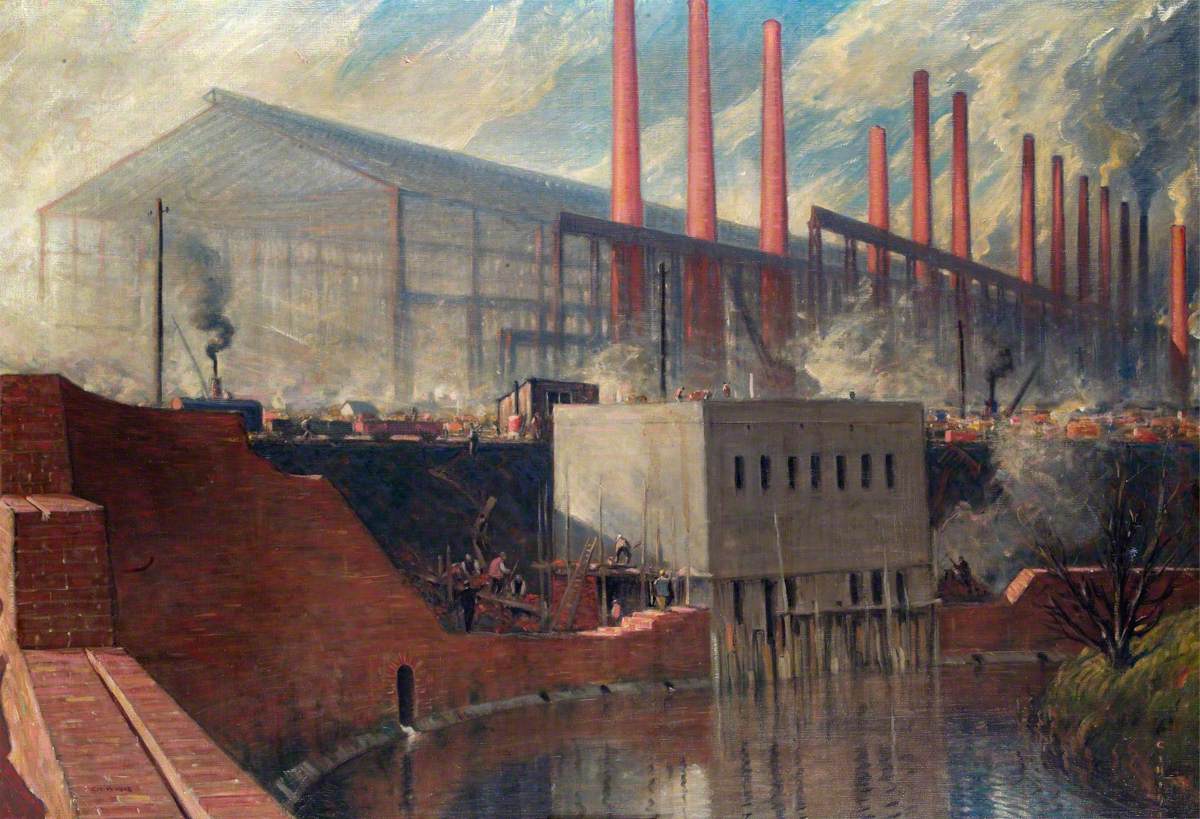 Holmes, Charles John; A Two-Year-Old Steel Works: Erected during the War for Messrs. Steel, Peech & Tozer, Ltd, Phoenix Works, Rotherham; IWM (Imperial War Museums); http://www.artuk.org/artworks/a-two-year-old-steel-works-erected-during-the-war-for-messrs-steel-peech-tozer-ltd-phoenix-works-rotherham-5924