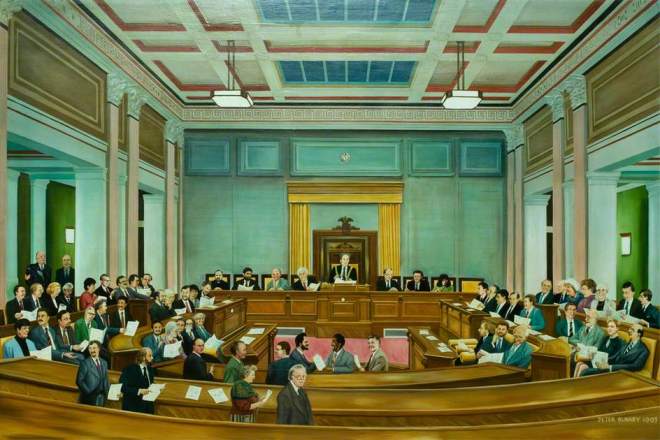 Only when non-whites are consistently present at the elite levels, as suggested by this 2008 painting, can one say that racial integration is truly occurring.
