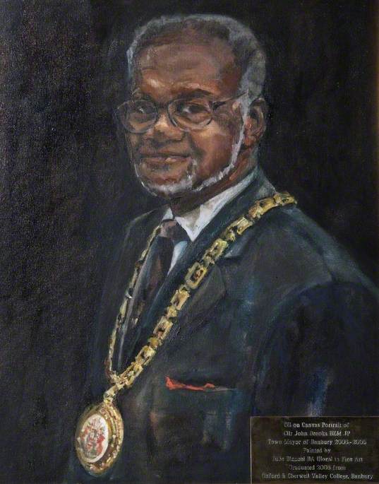 Previous ImageNext Image Bianchi, Julie, b.1958; Councillor John Brooks (b.1935), BEM, JP, Town Mayor of Banbury (2005-2006) Bianchi, Julie; Councillor John Brooks (b.1935), BEM, JP, Town Mayor of Banbury (2005-2006); Banbury Town Council; http://www.artuk.org/artworks/councillor-john-brooks-b-1935-bem-jp-town-mayor-of-banbury-20052006-43208