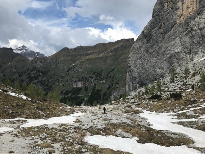 Looking down into the Val di Fassa. We have to reach that town at the very bottom.