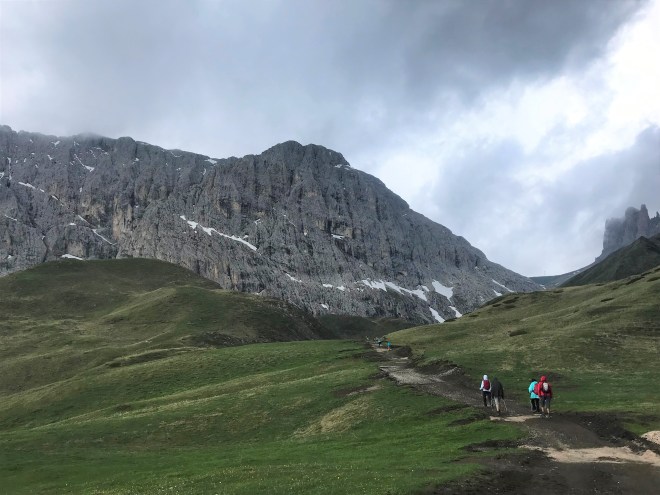 After lunch, and after the rain has slackened, we set off again, making for the Passo di Carezza, the end of our hike