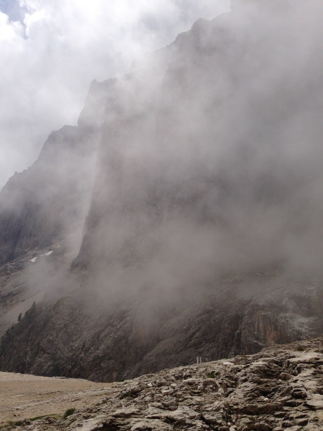 On our way back down to the “Stella Alpina”, the weather started closing in, wreathing the cliffs around us in clouds