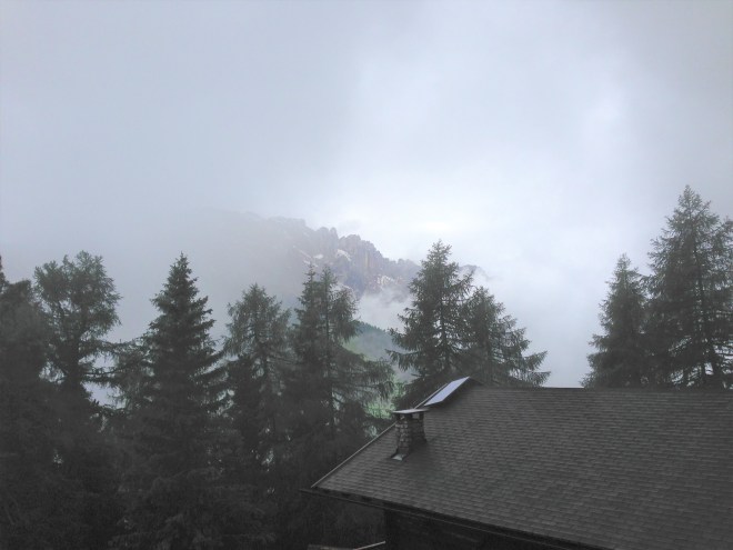 At the Passo di Carezza, we took refuge from the rain in a hotel’s restaurant, and drank a cup of tea while waiting for the bus to take us down to the Val di Fassa. The next day, we took the bus back to Bolzano, and from there made our way back to Milan.