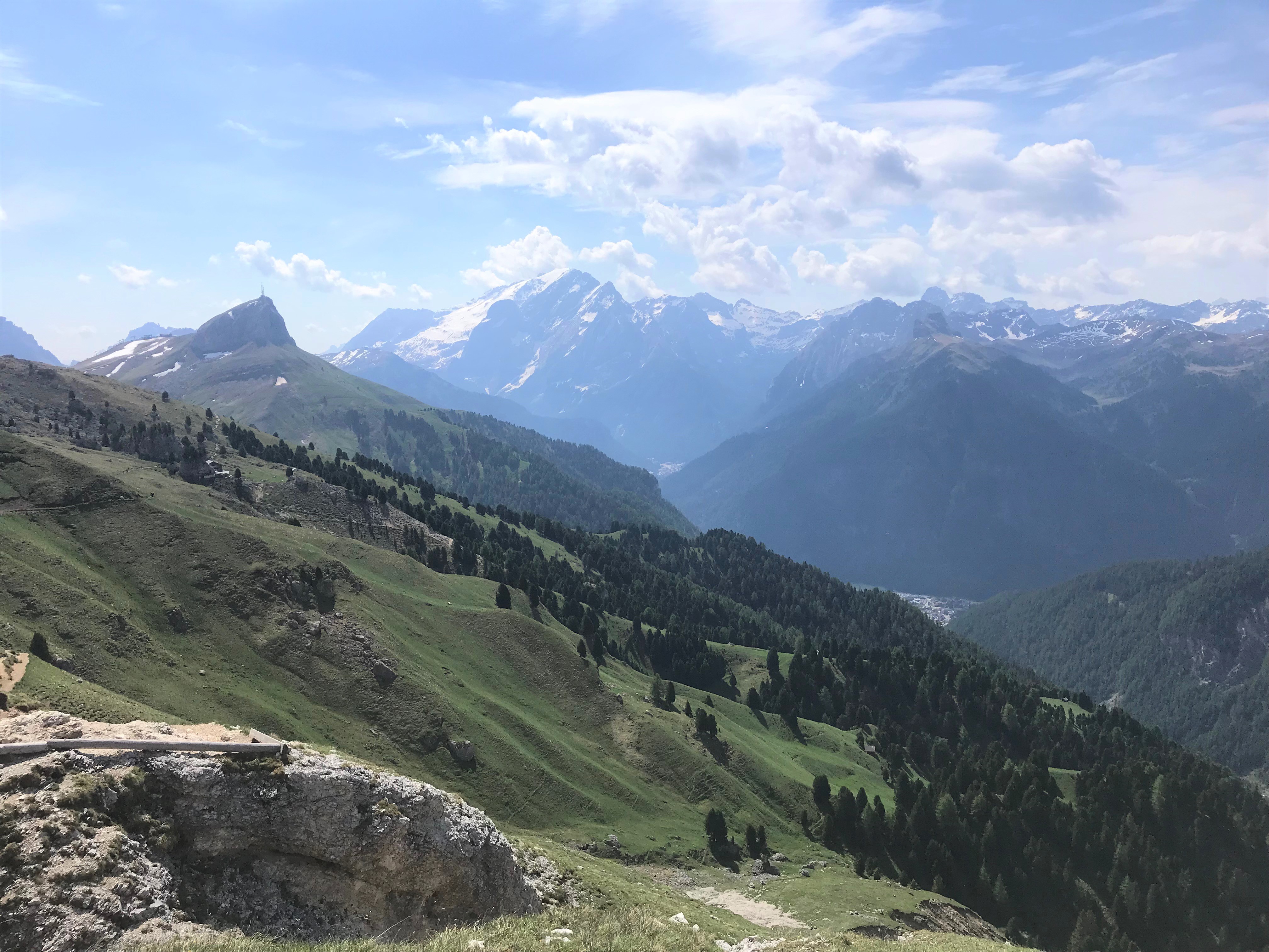 Previous ImageNext Image IMG_1295A June 20: Looking down into the Val di Fassa. We have to reach that town at the very bottom of the photo.