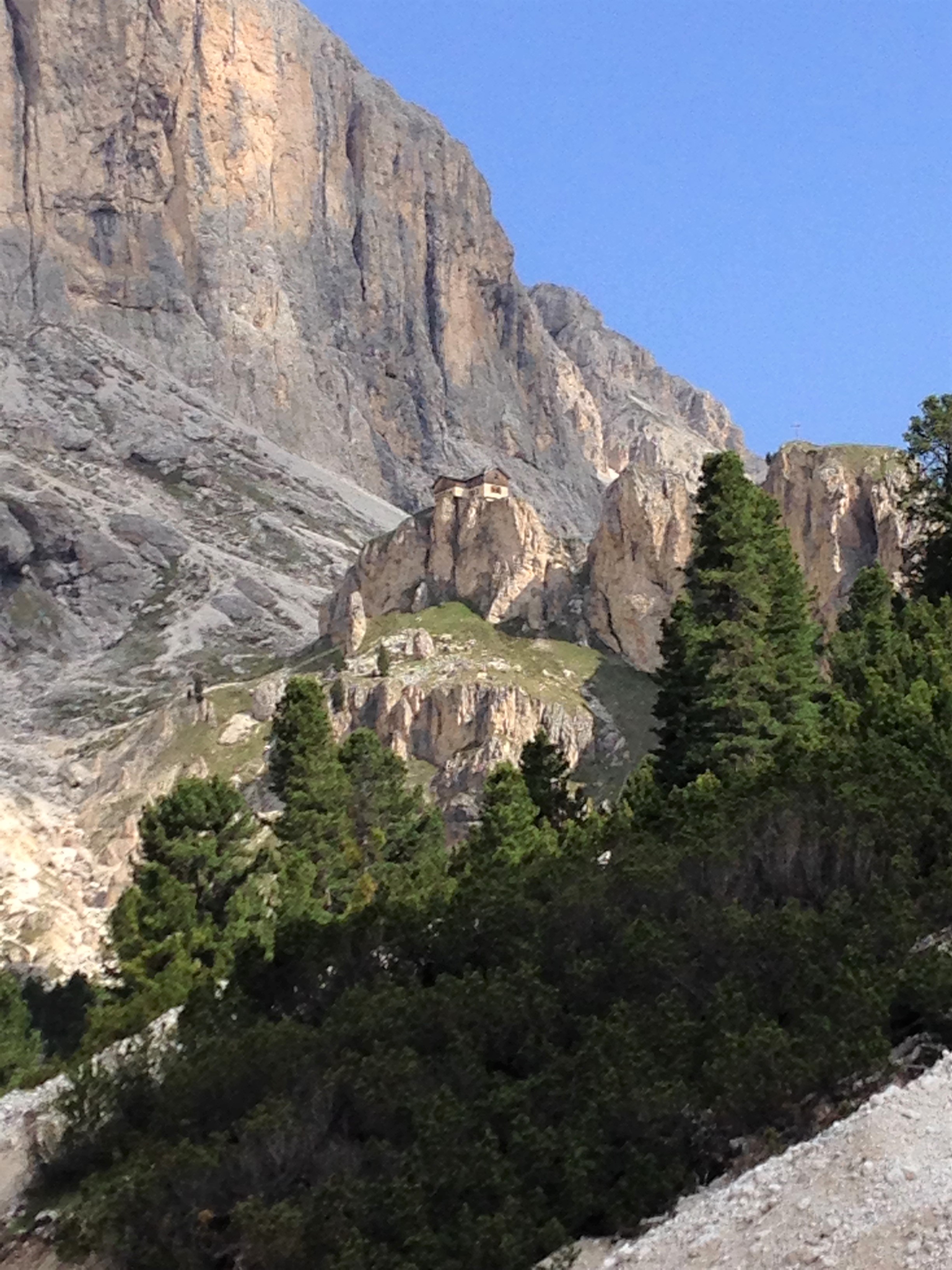 Previous ImageNext Image IMG_1350 The mountain hut “Paul Preuss”, point of our first break, sitting precariously on a cliff