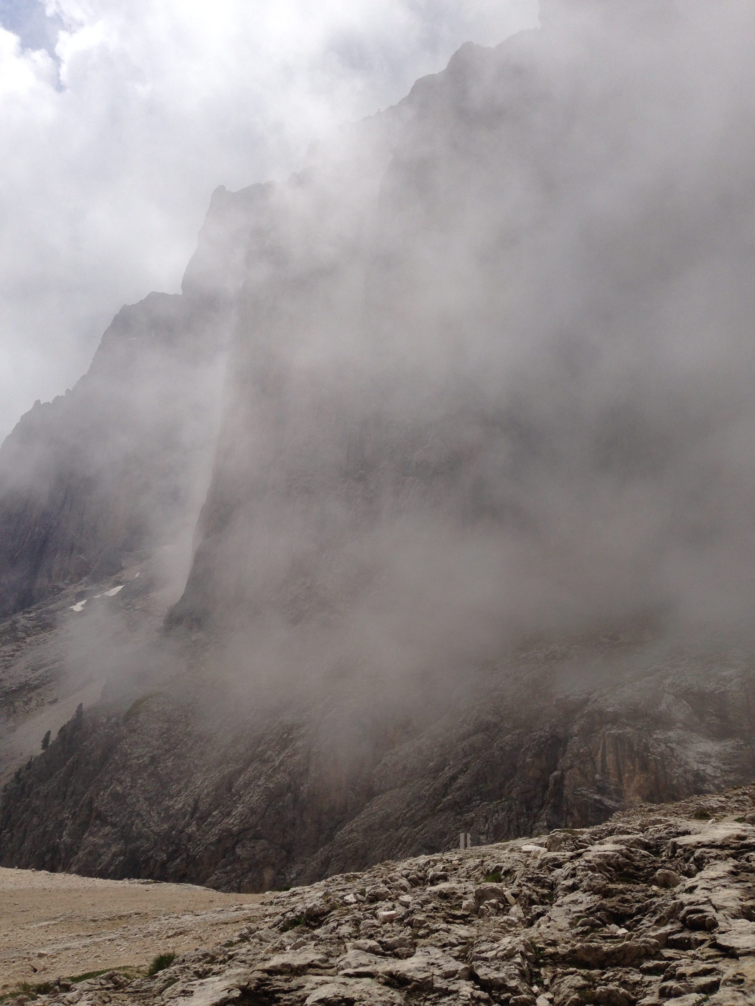 Previous ImageNext Image IMG_1367 On our way down to the “Stella Alpina”, the weather started closing in, wreathing the cliffs around us in clouds