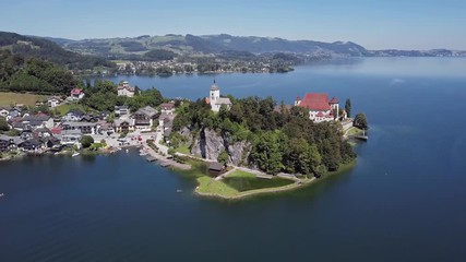 Traunkirchen is wonderfully located, clustered as it is around a rocky spit perched on the edge of the lake – readers with sharp eyes may notice that spit in the photo above. I add in here a closer aerial view of the village.