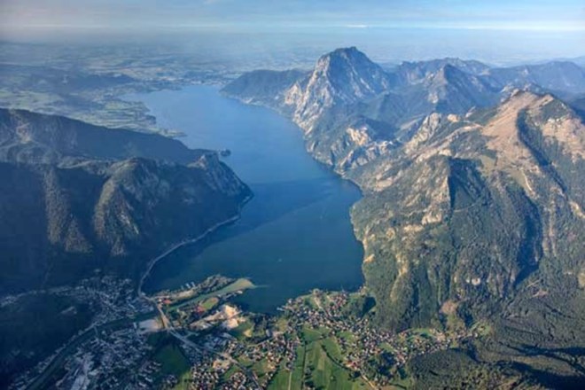My wife and I recently spent a long weekend on Traunsee (Lake Traun), which is one of several lakes which sprinkle the Salzkammergut region of Austria. Here is an aerial photo of the lake, looking from south to north.