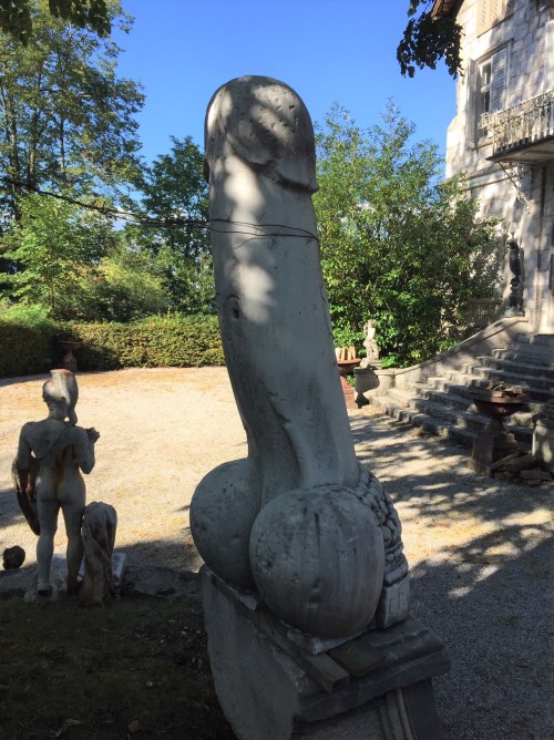 After Baroness Pantschoulidzeff’s death, the villa passed through various hands. Whoever owns it now has a collection of Ancient Greek or Roman statues (or copies thereof) in the garden. Among these, there is one which is – how shall I put it? – particularly intriguing: it is a huge phallus. Of course I had to take a photo.