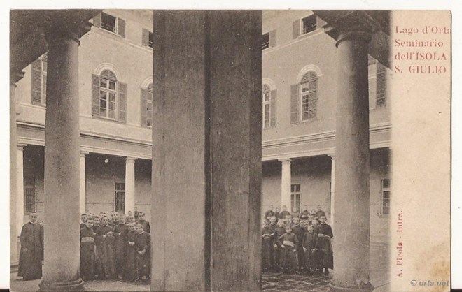 As a sign of the changes, the remains of the castle on the island were dismantled completely in 1841 and in their place a huge seminary was built – it is that big blockhouse of a building which I thought were old army barracks. We have here an old postcard celebrating the seminarists.