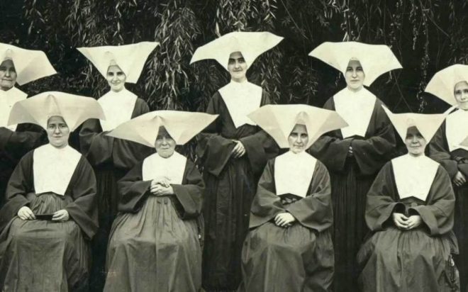 It’s a wonderful piece of ceramic, depicting as it does two Daughters of Charity singing. Until the reforms of Vatican II, Daughters of Charity used to wear this very striking wimple. Lord knows why they wore it, though.
