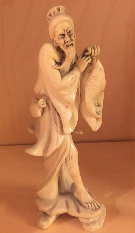 I’m rather more tolerant of this other figurine which my mother-in-law bought, also of a peasant, but this time of a Chinese peasant. Since he’s holding a fish, I presume it’s a fisherman.