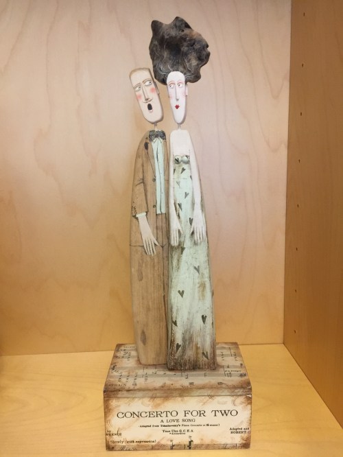 The piece, by the artist Lynn Muir, is made of wood and painted. It celebrates a song that came out in the 1930s or ’40s (I haven’t been able to pin this down). The tune was derived from one of Tchaikovsky’s piano concertos. I throw in the song’s lyrics since they explain the piece.