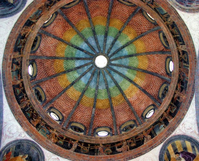 But the chapel’s real interest lies in its interior. There are lots of things to admire, but two things stood out for me. One is the interior decoration of the dome, by Vincenzo Foppa.