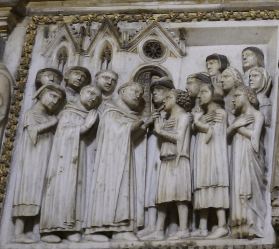 These tell the story of the saint’s miracles, his death, funeral, and canonization. They are gems of storytelling. I’m sorely tempted to insert photos of all the bas reliefs, but I will control myself and only insert four.