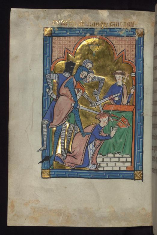 In this other manuscript from the 1220s, the relationship between the two men has completely broken down and Thomas is excommunicating some of the king’s men.