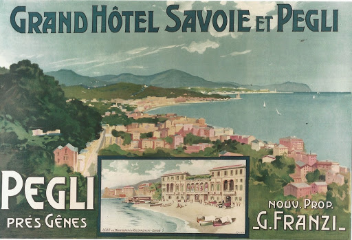 Marquess Pallavicini wanted to turn Pegli into a smart seaside resort, and as we have seen for a while this plan was successful, as this poster from the turn of the century suggests.