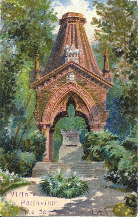 Looking at all that, I have a sense of being trapped in a rather bad knock-off of a Wagnerian opera, with some knight errant wandering the forests of Mittel Europe searching for his Loved One. But what I feel doesn’t matter. It’s what people at the time felt that matters. They loved it. When it opened to the public (for a fee), it was an instant success. It became the centre-piece of a broader plan by Marquess Pallavicini to turn Pegli from a sleepy little fishing village on the far outskirts of Genova into a smart seaside resort where the Great and the Good from all over Europe could come to spend their winters (and later their summers). The Marquess used his political muscle (he was a Senator in the newly-formed Kingdom of Italy) to make sure that the railway being built out from Genova westwards had a stop at Pegli, donating part of his land for the station buildings as well as for an upscale hotel to house the Great and the Good who would be arriving by train and for a smart new municipal building from which the new, modern municipality he was promoting could be run. Other Genoese aristocratic families which had summer villas in the area knew a good thing when they saw it and had their villas turned into luxurious hotels. And the Great and the Good came: the hereditary princes of the German Empire, various members of Italy’s House of Savoy, various literati such as George Sand, Alfred de Musset, August Strindberg, Franz Kafka, Arrigo Boito, among others. All these Great and Good visited the gardens at Villa Durazzo Pallavicini, and where they went so did Europe’s bourgeoisie.