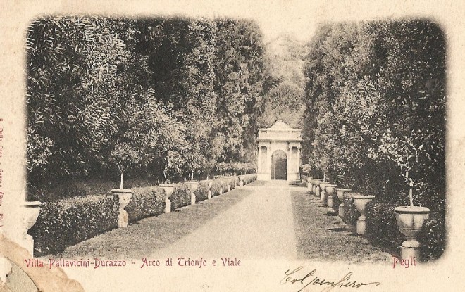 By now readers might be getting a little impatient and asking themselves what these gardens looked like. Let me answer them by showing a series of postcards from the turn of the century. Wonderful things, postcards. People loved to show the folk back home where they had been, and tourist spots like the gardens of the Villa Durazzo Pallavicini were more than glad to oblige. My wife has a large collection of postcards sent by her parents, grandparents, and their friends over the decades, and it’s lovely to sit down of a winter evening and browse through them. But I digress. Here are postcards of the gardens: