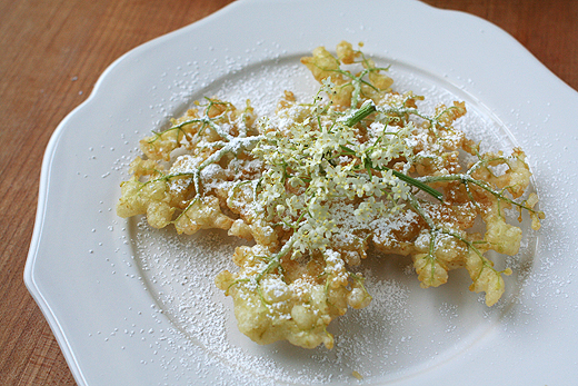 One finds this dish in the German-speaking lands, under the names Hollerküchel in Germany and Hollerstrauben in Austria. Once again, I have to confess to never having seen this dish during all my years in Austria. I could argue that this is because it is a seasonal dish, made when the elder trees flower in May, a time when we are almost never here, but I’m afraid I think it shows once again that we do not travel in the right circles. Recipe, as usual, at the end.