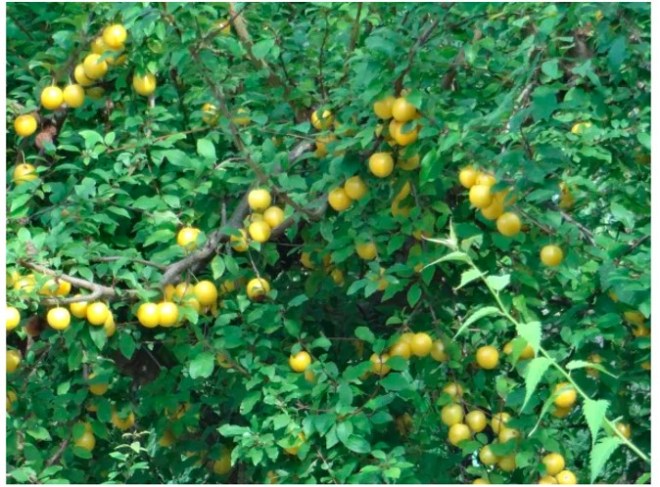 About a month ago, during our hikes we were coming across what looked like mirabelle plums: small, round, yellowish.