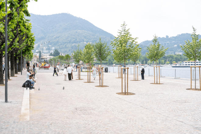We walk along Como’s newly developed lake front (which will look very nice when the newly-planted trees have grown).
