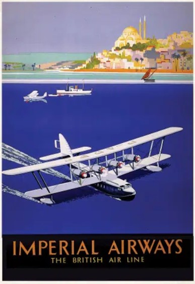 During the years between World Wars I and II, the use of seaplanes flourished: the “airfields” were free, compared to the high cost of building airfields on land. Various commercial lines were established, giving rise to some wonderful poster art.