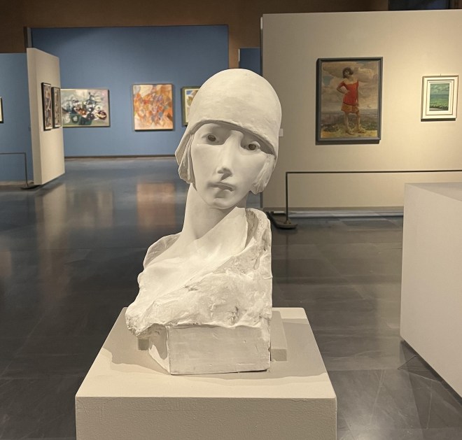 It covered the 19th and the first part of the 20th Centuries. To be frank, there wasn’t much in the collection that struck me. This statue, of a young woman wearing a hat typical of the 1920s, was one of the few pieces that caught my attention.