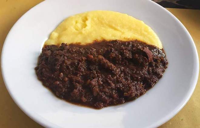 My wife was not persuaded by her choice, but I had an excellent Pastisada de caval, a dish of horse meat stew laid on a bed of polenta.