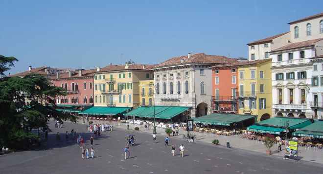 After lunch, we headed over to our hotel, dropped off our bags, and sallied forth on our first itinerary. This took us first to piazza delle Erbe, which has been the centre of Verona’s civic life since Roman times, when this was the forum.