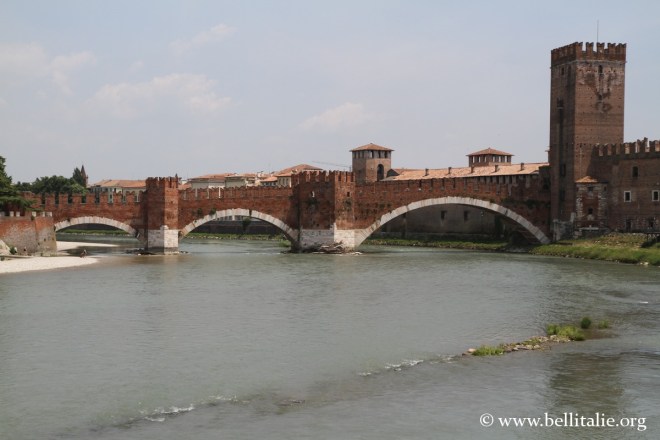 We passed the old Roman bridge, much remodeled over the centuries (and partially destroyed by the Germans, who blew it up when they retreated out of Verona in 1945).