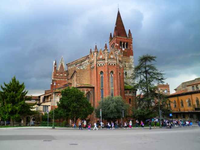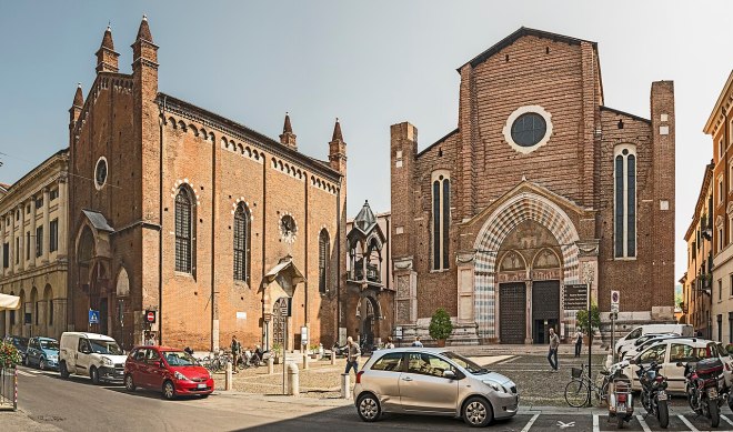 The itinerary drew us along the river and then through a maze of little streets to the church of San Zeno. As we entered into the piazza, this was the view that greeted us.