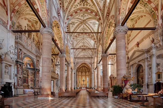 Santa Anastasia’s facade, the first part of the church we saw, was nothing to write home about, and in fact I later read that it was never completed (a problem in Italy which I’ve complained about in an earlier post).