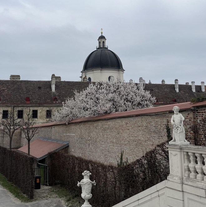 And yesterday, during our last walk around Vienna, which took us through the gardens of the Belvedere Palace, we passed a blooming cherry tree.