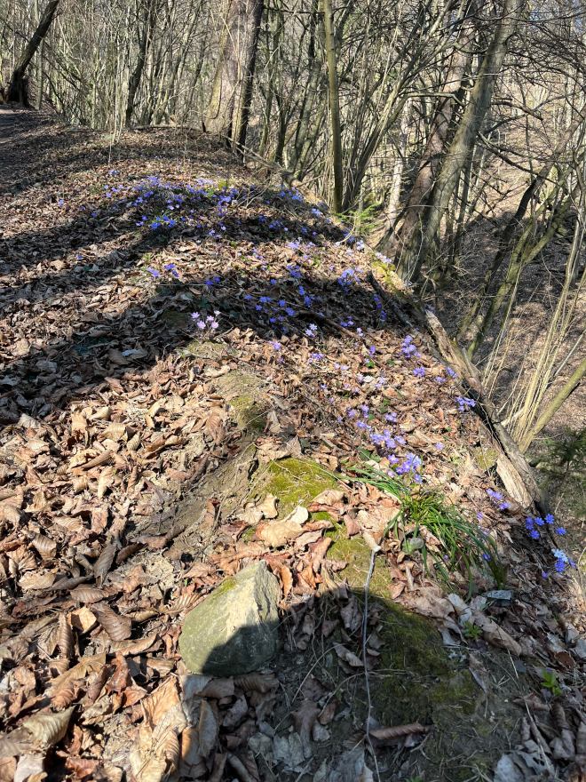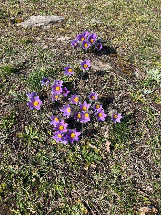 Further on, on a dry, rocky outcrop overlooking the Danube river, we spied a little group of greater pasque flowers – well named, Easter is around the corner.